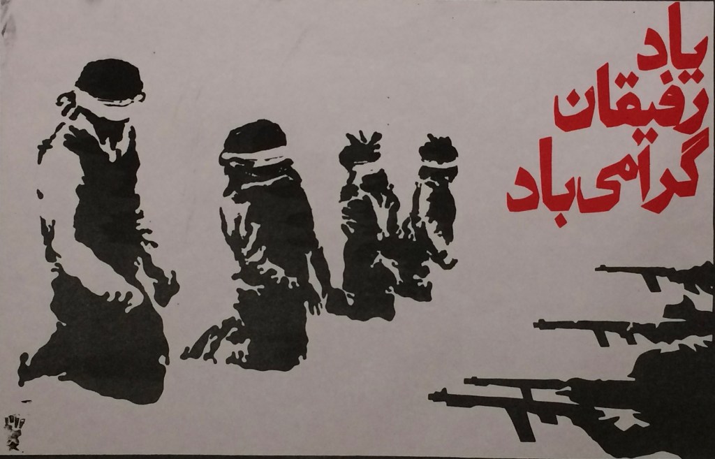 از کارهای کارگاه تولید پوستر، دانشکده هنرهای زیبا، دانشگاه تهران، سال ۱۳۵۸؛ مسئول: نیکزاد نجومی