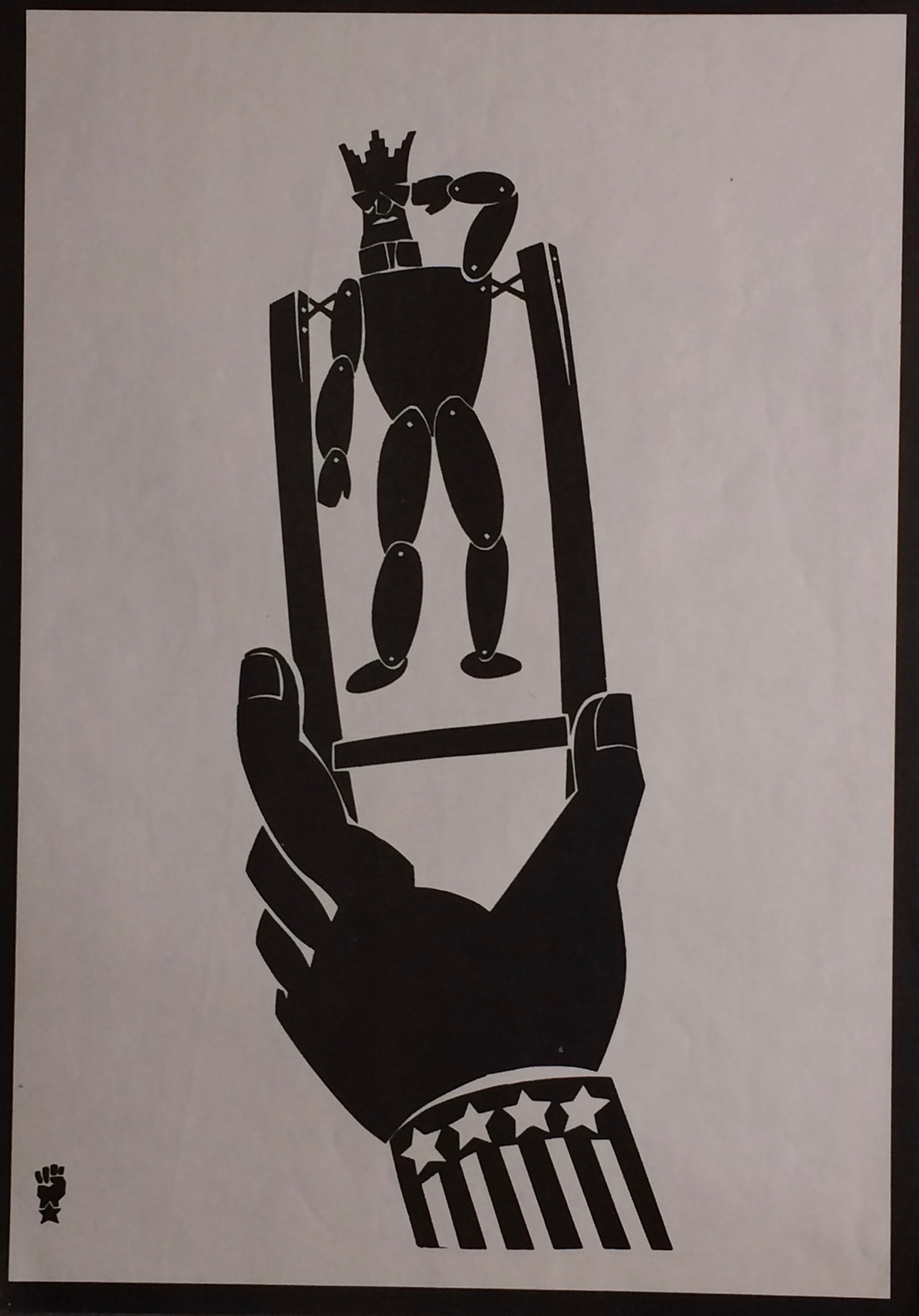 از کارهای کارگاه تولید پوستر، دانشکده هنرهای زیبا، دانشگاه تهران، سال ۱۳۵۸؛ مسئول: نیکزاد نجومی