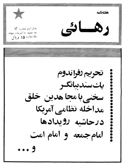رهائی دوره دوم – شماره ١٣ در ٦ آذر ١٣٥٨ منتشر شد رهایی دوم- شماره ۱۳Download Related 6. ژوئیه 202123. ژوئیه 2021 بهدست vahdat دستهها: نشریهها، رهایی دوره دومبرچسبها: مجاهدین، آمریکا، امام جمعه و امام امت، تحریم رفراندوم، سند