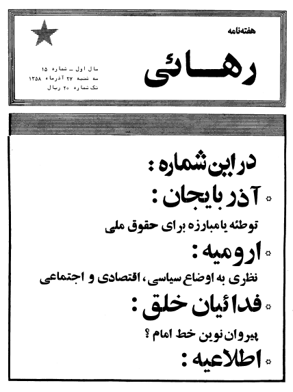 رهائی دوره دوم – شماره ١٥ در ٢٧ آذر ١٣٥٨ منتشر شد رهایی دوم- شماره ۱۵Download Related 6. ژوئیه 202123. ژوئیه 2021 بهدست vahdat دستهها: نشریهها، رهایی دوره دومبرچسبها: قدائیان خلق پیروان نوین خظ امام، آذربایجان، ارومیه، اطلاعیه