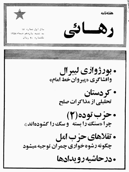 رهائی دوره دوم – شماره ١٧ در ١١ دی ١٣٥٨ منتشر شد رهایی دوم – شماره ۱۷Download Related 6. ژوئیه 202123. ژوئیه 2021 بهدست vahdat دستهها: نشریهها، رهایی دوره دومبرچسبها: چمران حزب امل، کردستان، بورژوازی لیبرال و خط امام، حزب توده