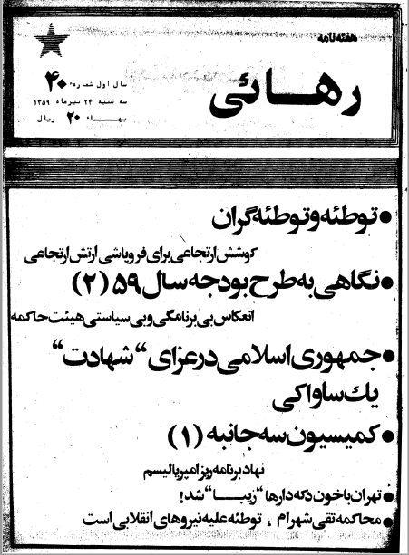 رهائی دوره دوم – شماره ٤٠ در ٢٤ تیر ١٣٥٩ منتشر شد رهایی دوم- شماره ۴۰Download Related 6. ژوئیه 202117. سپتامبر 2021 بهدست vahdat دستهها: نشریهها، رهایی دوره دومبرچسبها: کمیسیون سه جانبه، بودجه، تقی شهرام، توطئه گران، خون دکه داران، رهائی دوره دوم شماره ۴۰، شهادت ساواکی