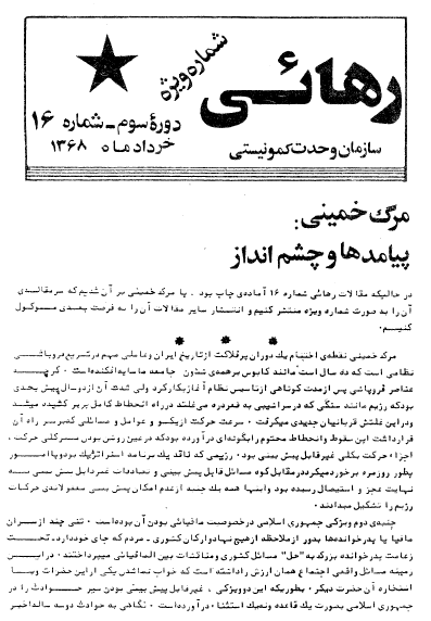 رهائی دوره سوم – شماره ۱۶ در خرداد ماه ١٣۶۸ منتشر شد 016Download Related 9. ژوئیه 202124. ژوئیه 2021 بهدست vahdat دستهها: نشریهها، رهایی دوره سومبرچسبها: مرگ خمینی، پیامدها و چشم انداز