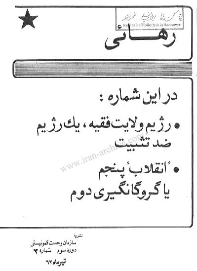 رهائی دوره سوم – شماره ۳ در تیر ماه ١٣۶۲ منتشر شد 003Download Related 9. ژوئیه 202124. ژوئیه 2021 بهدست vahdat دستهها: نشریهها، رهایی دوره سومبرچسبها: انقلاب پنجم گروگانگیری دوم، رژیم ولایت فقیه رژیم ضد تثبیت