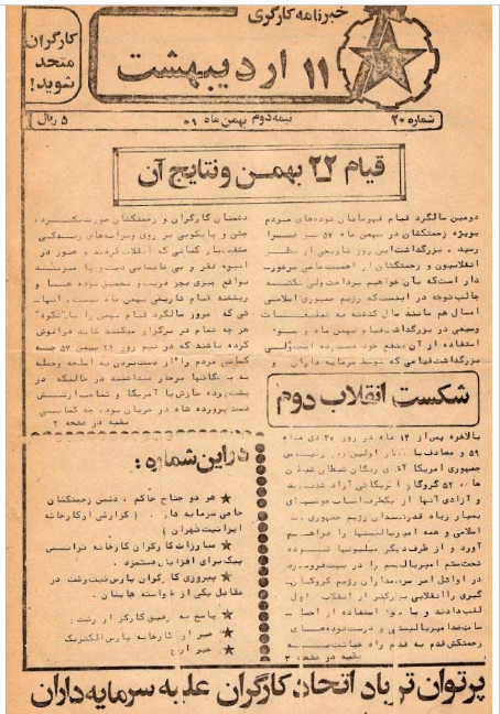 خبرنامهی کارگری ۱۱ اردیبهشت – شماره ۲۰ در بهمن ١٣۵۹ منتشر شد 11ordibesht59-20Download Related 10. ژوئیه 202116. سپتامبر 2021 بهدست vahdat دستهها: نشریهها، یازده اردیبهشتبرچسبها: نتایج قیام بهمن، هر دو جناح حاکم دشمن زحمتکشان حامی سرمایه دار، کارگران ترانس پیک، پارس نیت رشت، پارس الکتریک، پاسخ به رفیق کارگر از رشت، ارج، شکست انقلاب دوم