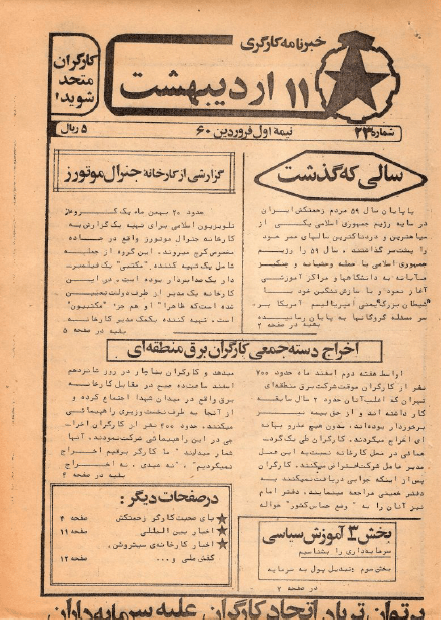 خبرنامهی کارگری ۱۱ اردیبهشت – شماره ۲۳ در فروردین ١٣۶۰ منتشر شد 11ordibesht60-23Download Related 10. ژوئیه 202116. سپتامبر 2021 بهدست vahdat دستهها: نشریهها، یازده اردیبهشتبرچسبها: کفش ملی، کارگران جنرال موتورز، کارخانه سیتروئن، پای صحبت کارگر، اخبار بین المللی، اخراج دسته جمعی کارگران برق منطقه، سالی که گذشت