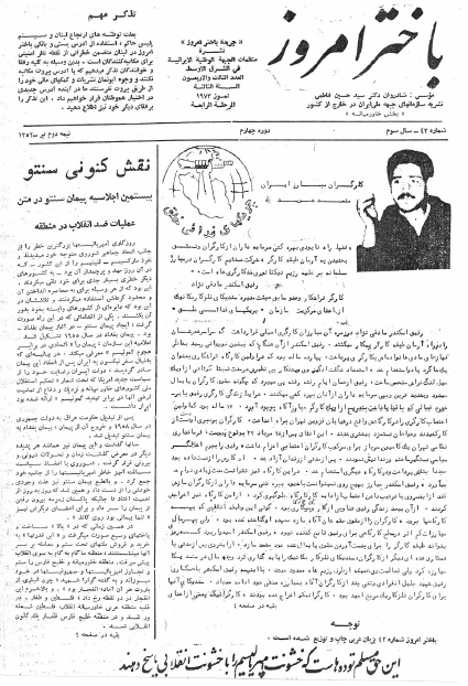 باختر امروز ـ شماره ٤۳ در نیمه دوم تیر ١٣٥٢ منتشر شد bakhtare-emrooz-43Download Related 23. ژوئیه 202123. ژوئیه 2021 بهدست vahdat دستهها: نشریهها، باختر امروزبرچسبها: مجاهدین، کارگران مبارز ایران متحد شوید، اسکندر صادقی نژاد، اطلاعیه چریکهای فدائی خلق، خاطره شهیدان، سنتو