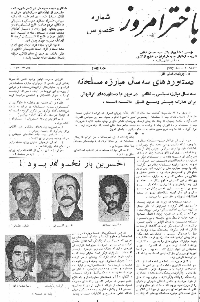 دستهها: نشریهها، باختر امروزبرچسبها: چریکهای فدائی خلق دستاوردهای سه سال مبارزه مسلحانه، یاد رفیق پویان گرامی باد، آخرین بار نخواهد بود، اخبار، اطلاعیه چریکهای فدائی خلق، به ابتکار جبهه ملی ایران در خاورمیانه جمع آوری کمک مالی به انقلاب عمان و خلیج، دستگیری یک گروه مبارزین ۱۲ نفره، عباس سماکار ، کرامت دانشیان، خسرو گلسرخی ، رضا علامهه زاده ،طیفور بطائی