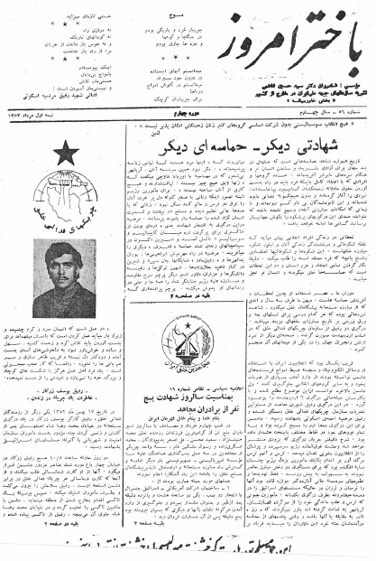 باختر امروز ـ شماره ۵۶ در نیمه اول مرداد ١٣٥۳ منتشر شد bakhtare-emrooz-56Download Related 29. ژوئیه 202129. ژوئیه 2021 بهدست vahdat دستهها: نشریهها، باختر امروزبرچسبها: فتوای خمینی، مرضیه اسکوئی، یوسف زرکار، اخبار، از فتوای تاریخی فروردین ۴۲ تا فتوای انقلابی ۱۶ رمضان ۹۳، اطلاعیه سیاسی نظامی شمارهه ۱۹ سازمان مجاهدین، بمناسبت شهادت ۵ مجاهد، خاطرات یک چریک در زندان، شهادتی دیگر