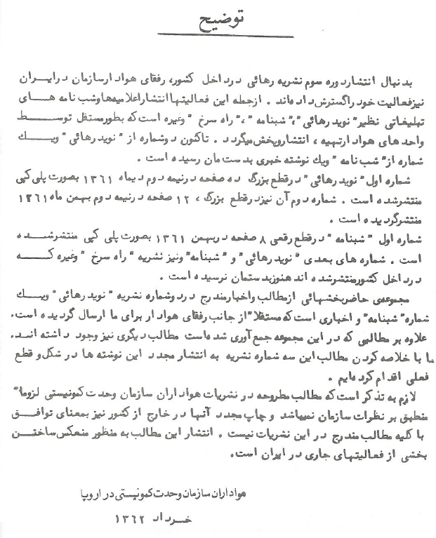 منبع: رهائی دورهی دوم، شمارههای ۲۷ و ۲۶