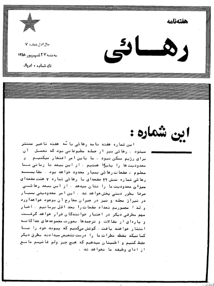 در ٢٦ تیر ۱۳۵۸ منتشر شد