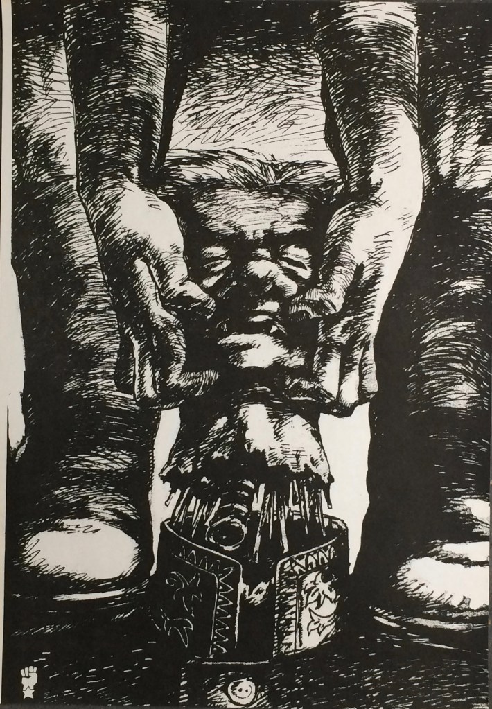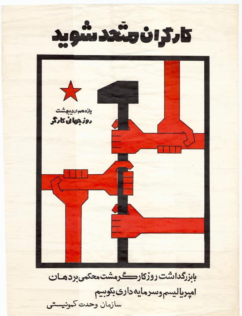 از کارهای کارگاه تولید پوستر، دانشکده هنرهای زیبا، دانشگاه تهران، سال ۱۳۵۸؛ مسئول: نیکزاد نجومی